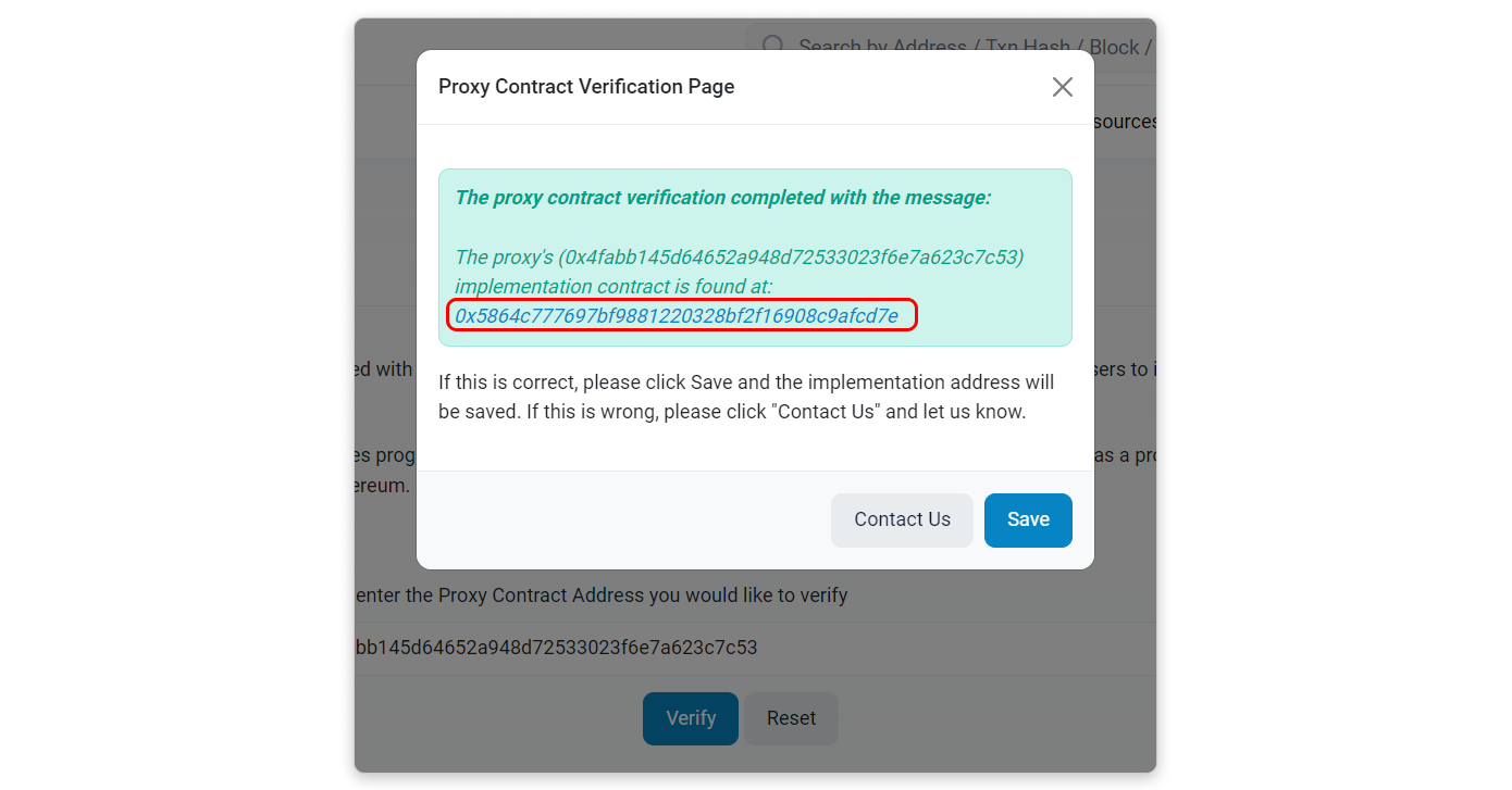 If the "Read/Write as Proxy" tab is not available, you can navigate to the button below, click "Verify" on the Proxy Contract Verification page, and copy the implementation address found: